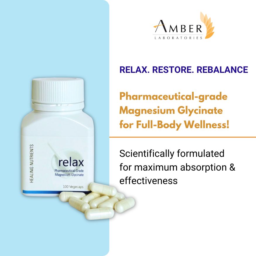 Relax is a high-quality magnesium glycinate supplement formulated for superior absorption and gentle digestion. Magnesium is an essential mineral involved in over 300 biochemical reactions in the body, supporting muscle function, nerve signalling, energy production, and cardiovascular health.